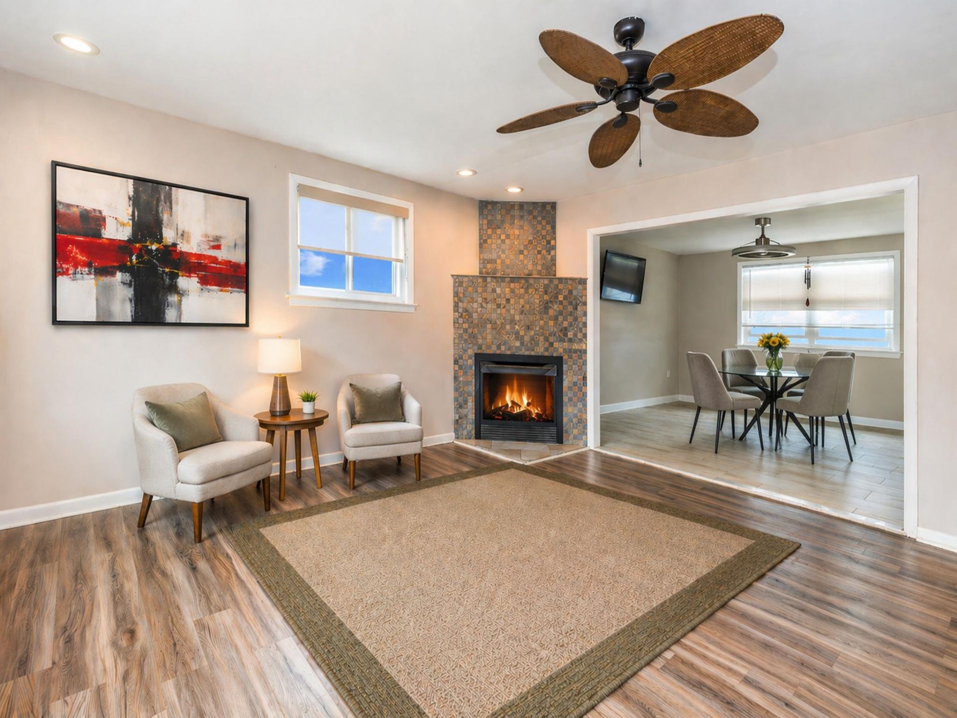 Flooring: Tile/Brick, Ceramic Tile, Laminate Plank, Hardwood, Partially Carpeted